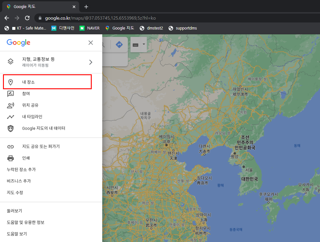 ※ 모바일로 확인하는 방법은 구글 지도 어플리케이션에서 동일한 구글 ID로 로그인 한 뒤 하단 '저장됨' 클릭 - '지도' 클릭 하시면 확인 가능합니다.