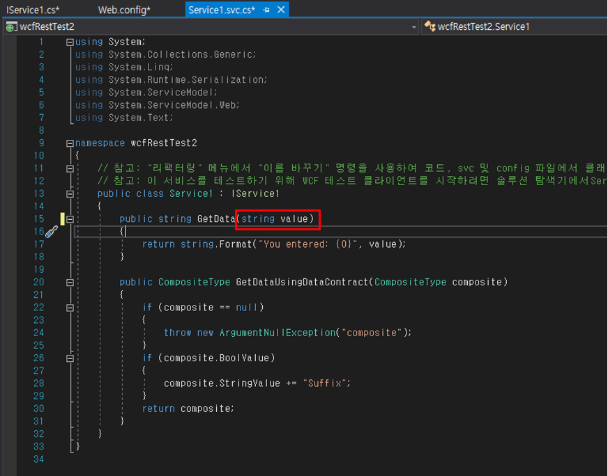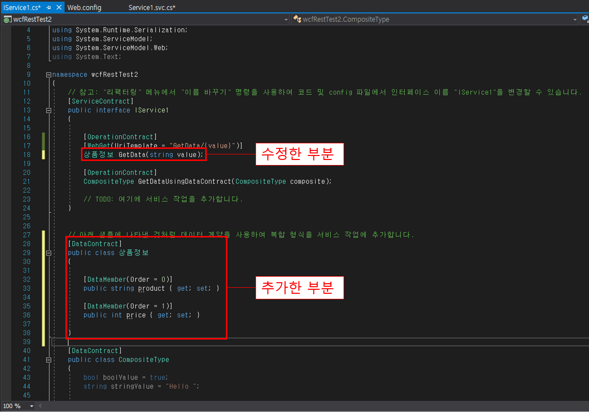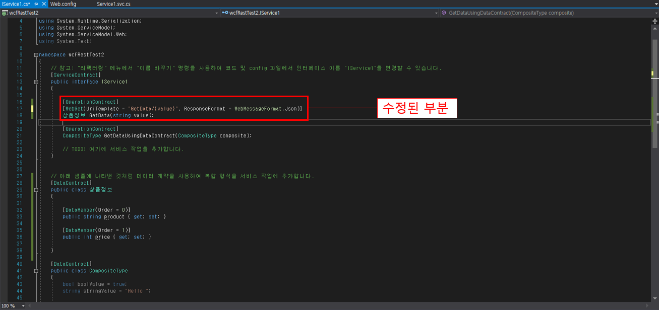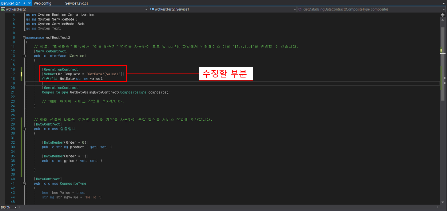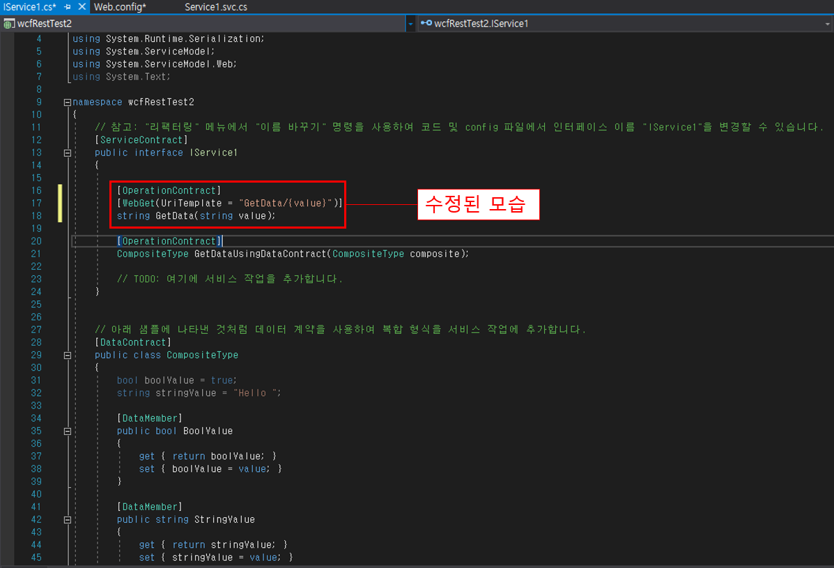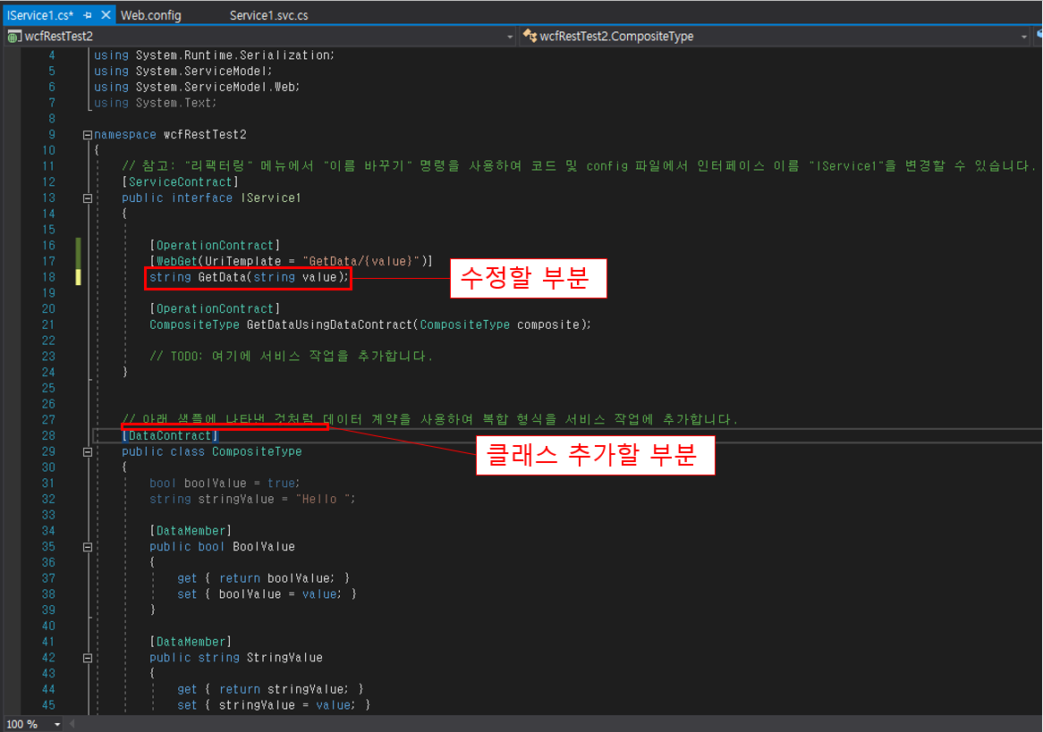 3. IService1.cs 코드 수정