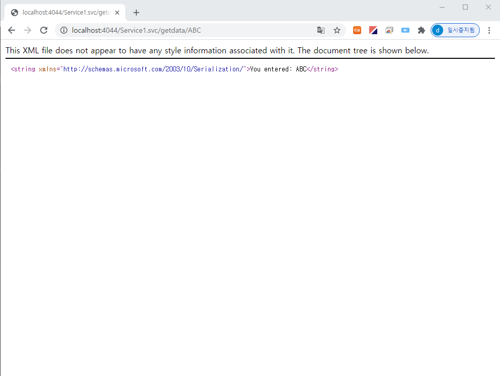 브라우저가 뜨면 주소창에 http://localhost:4044/Service1.svc/getdata/ABC 와 같은 형식으로 입력해 보세요.