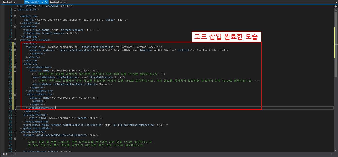 웹서비스를 만들기 위해서는 Web.config 를 수정해줘야합니다.