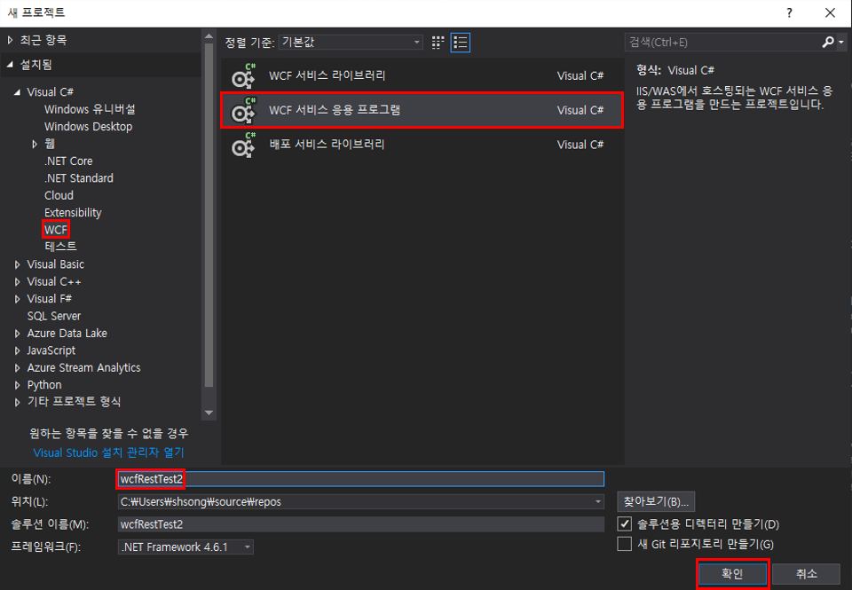1. visual studio에서 wcf 프로젝트 생성